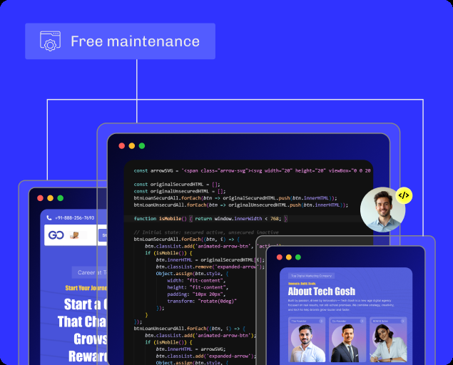 We'll handle the tech so you can focus on your business. Get Free Maintenance for 1 year ($100+ value). We'll keep your site fast, secure, and up-to-date, so you never have to worry about a thing.